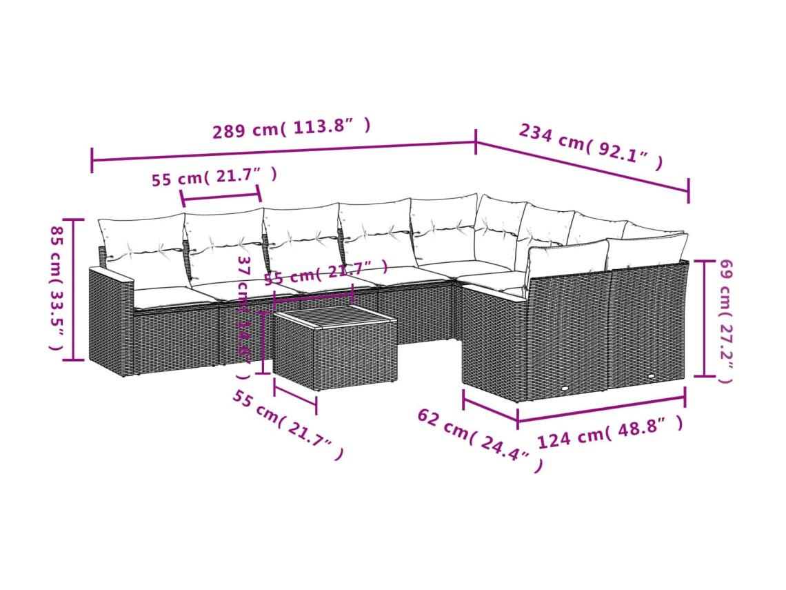 Salon de jardin 10 pcs avec coussins noir résine tressée