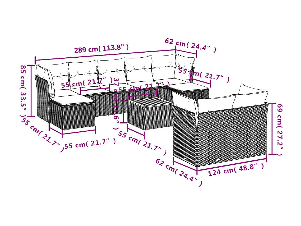 Salon de jardin 10 pcs avec coussins noir résine tressée