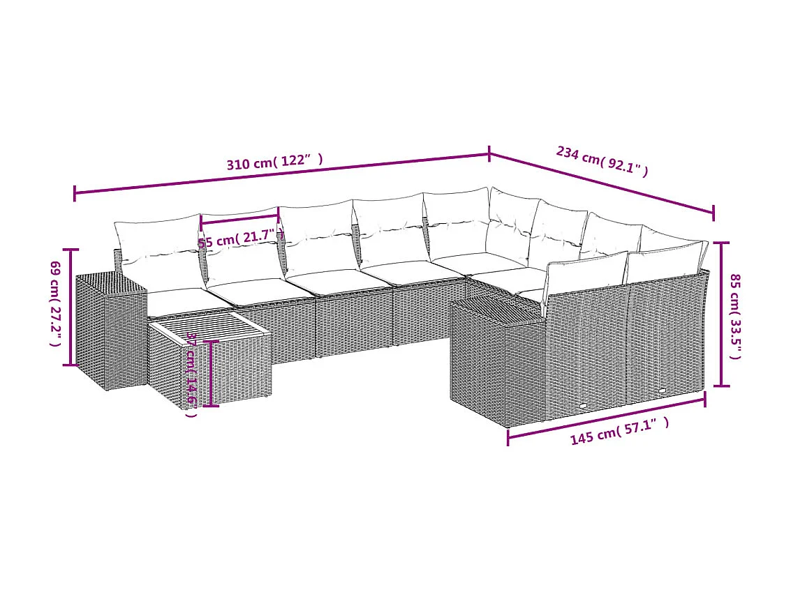 Salon de jardin 10 pcs avec coussins noir résine tressée