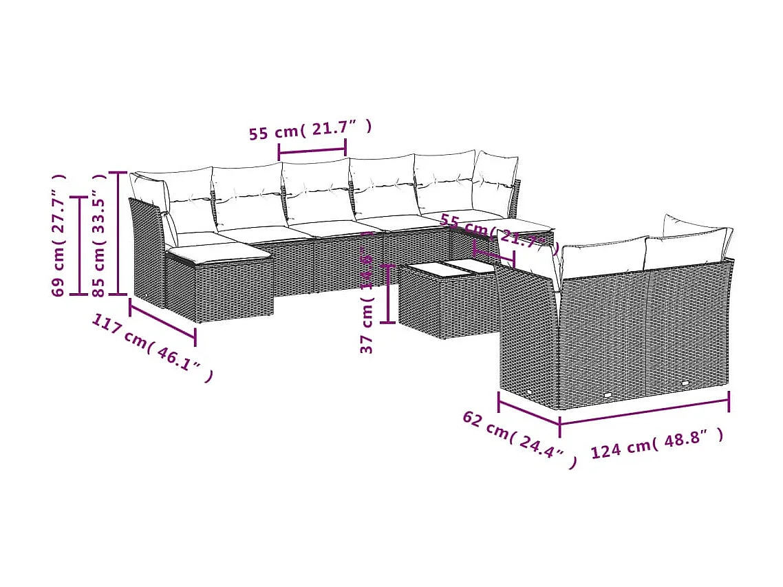 Salon de jardin 10 pcs avec coussins noir résine tressée