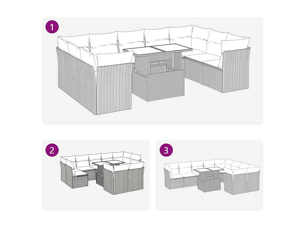 Salon de jardin 10 pcs avec coussins noir résine tressée