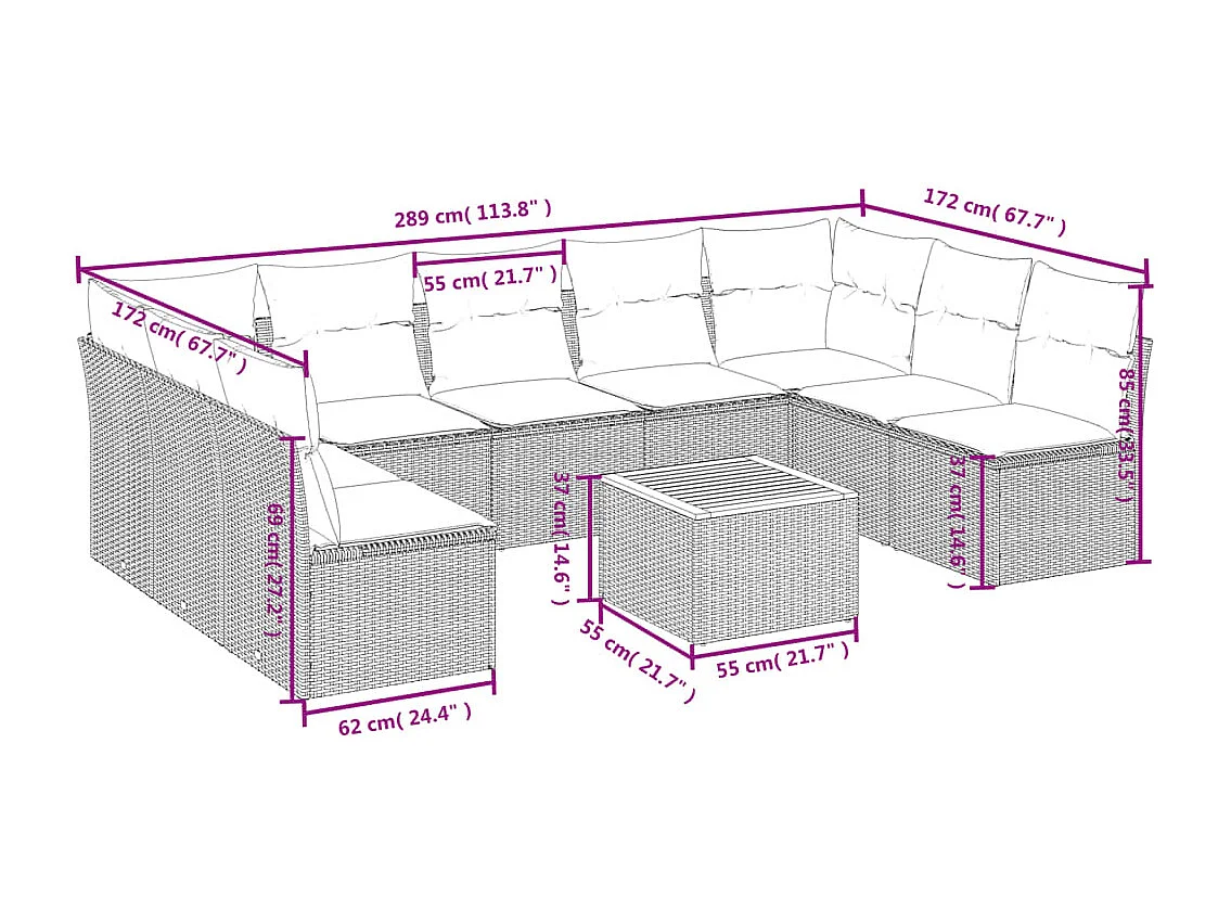 Salon de jardin 10 pcs avec coussins noir résine tressée