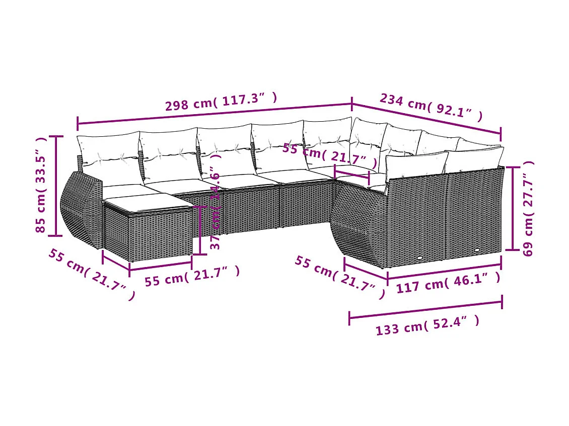 Salon de jardin 10 pcs avec coussins noir résine tressée