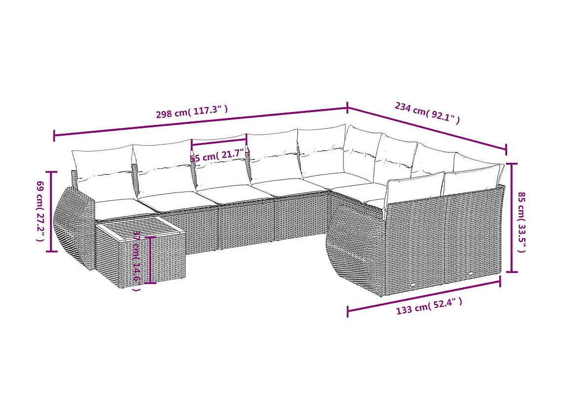 Salon de jardin 10 pcs avec coussins noir résine tressée