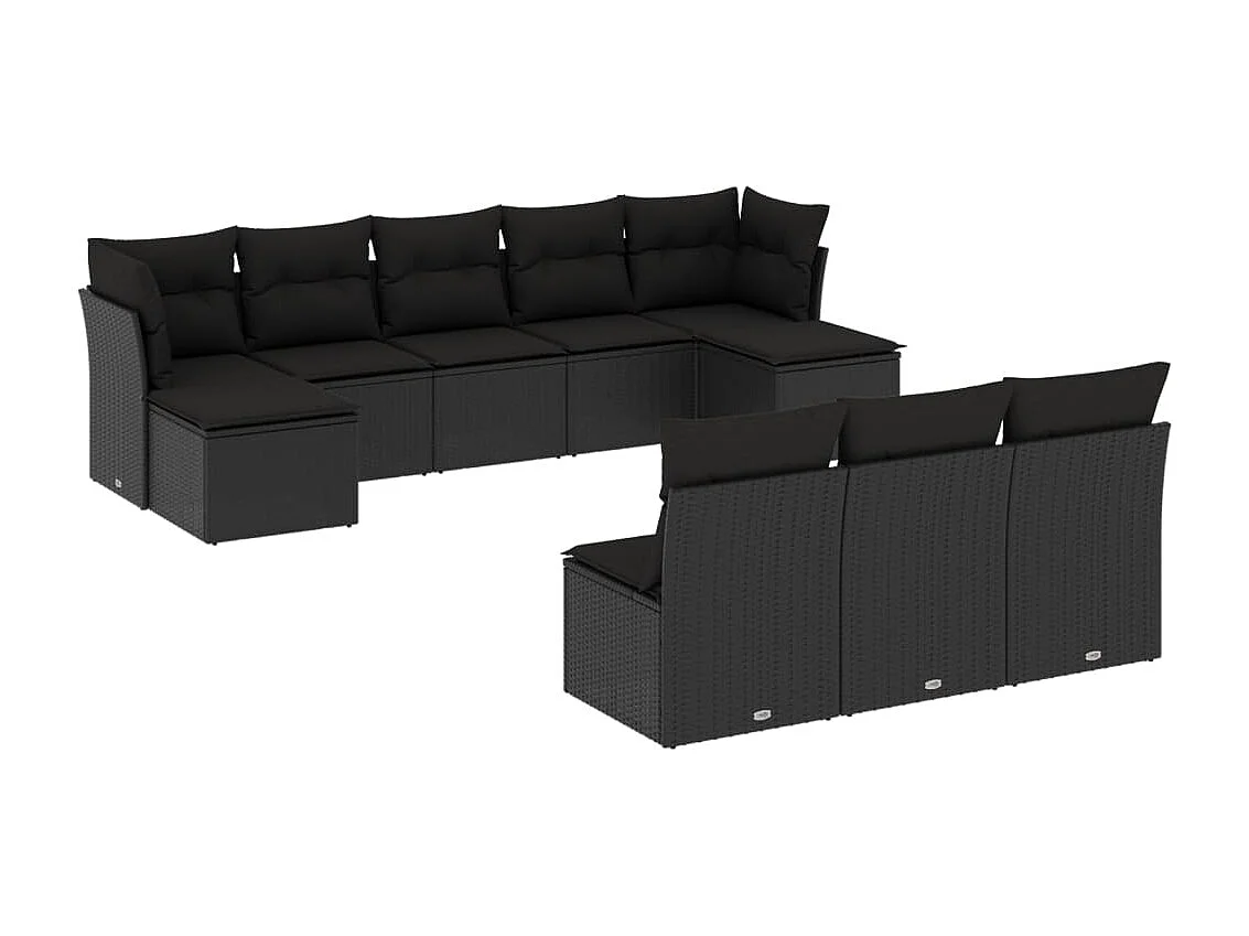 Salon de jardin 10 pcs avec coussins noir résine tressée
