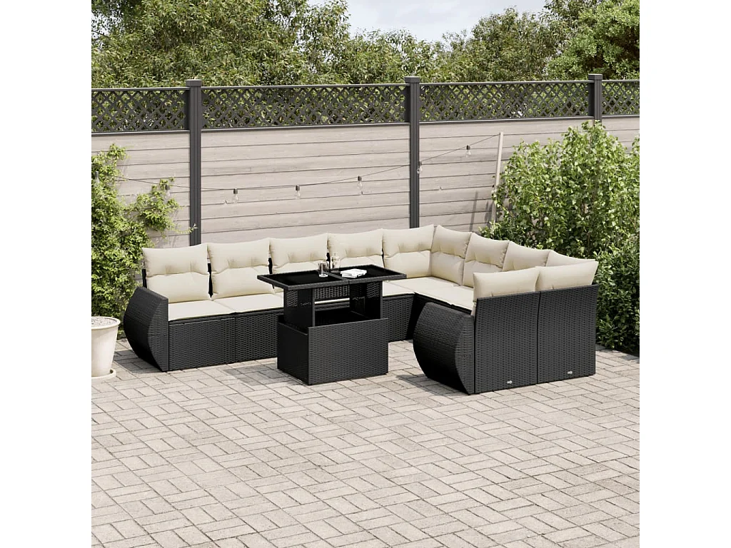 Salon de jardin 10 pcs avec coussins noir résine tressée
