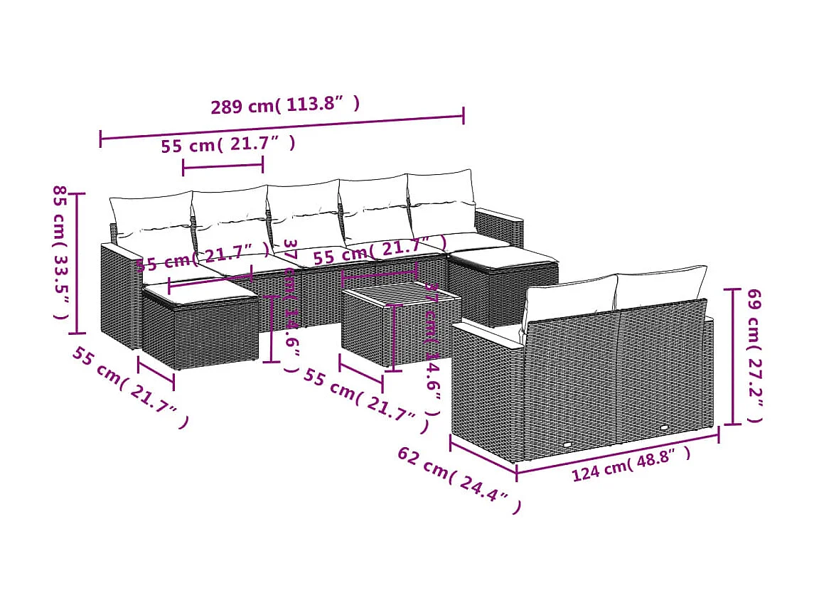 Salon de jardin 10 pcs avec coussins noir résine tressée