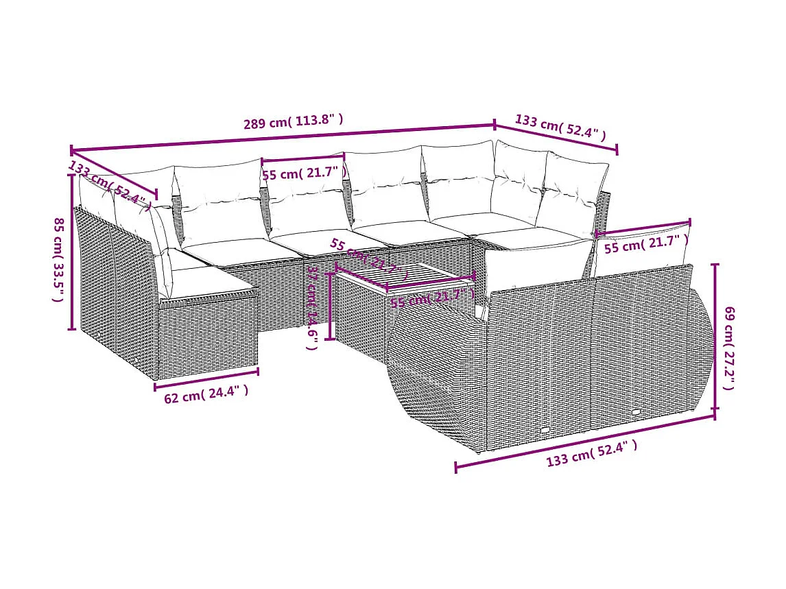 Salon de jardin 10 pcs avec coussins noir résine tressée
