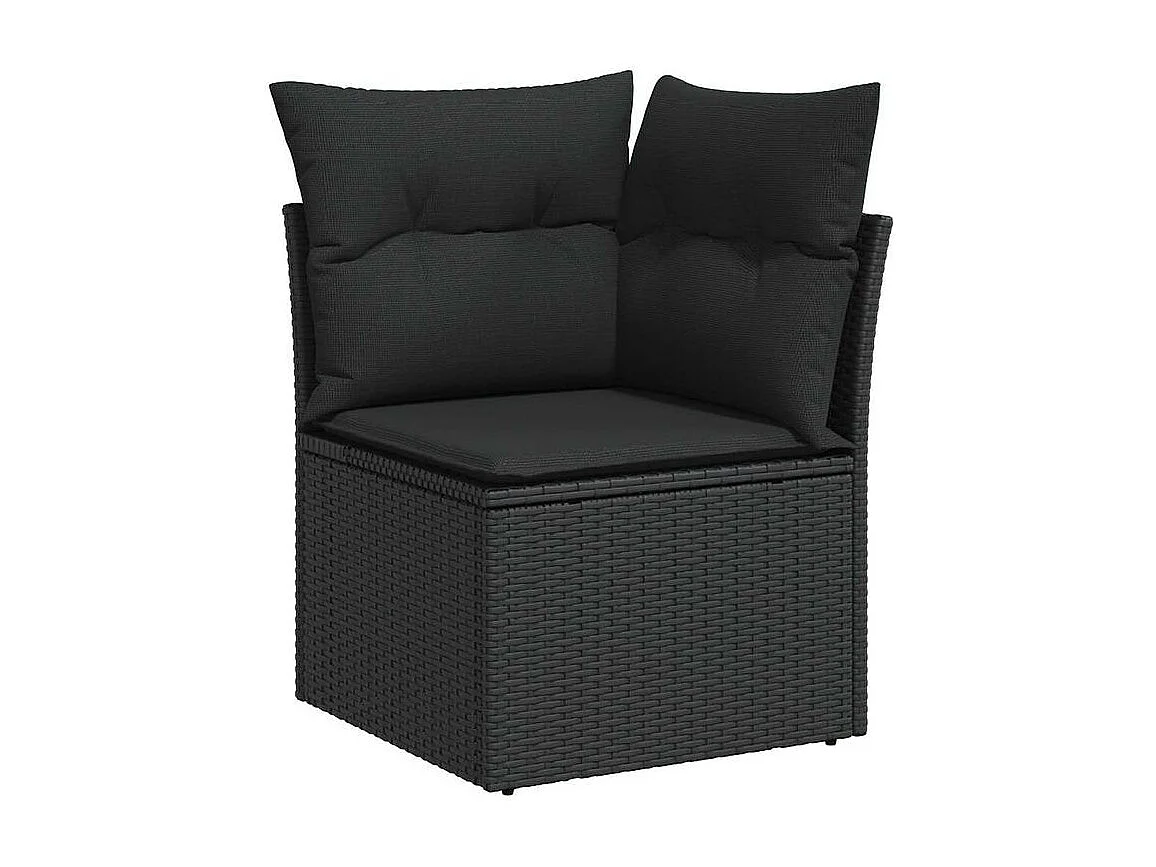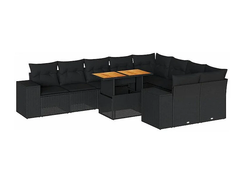 Salon de jardin 10 pcs avec coussins noir résine tressée acacia