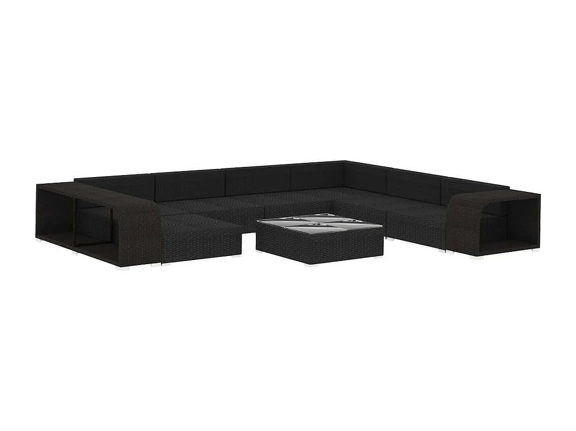 Salon de jardin 10 pcs avec coussins Résine tressée Noir 23