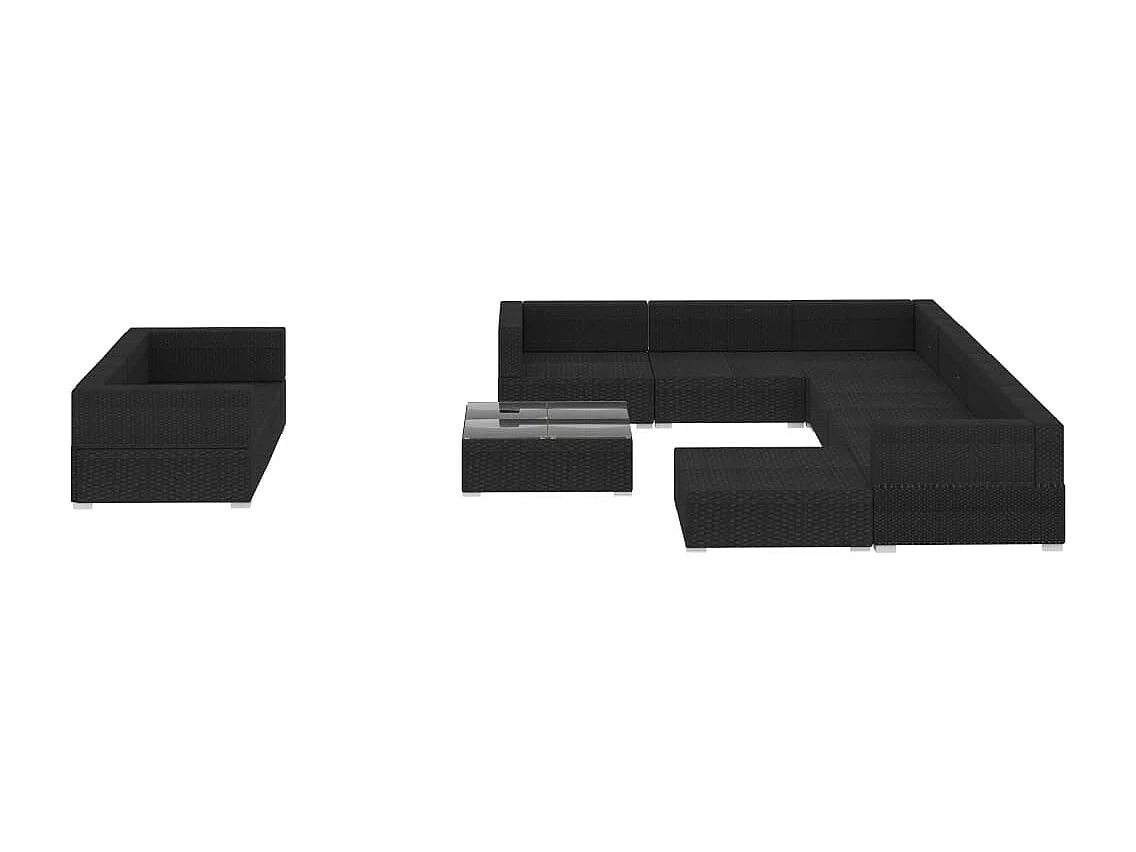 Salon de jardin 10 pcs avec coussins Résine tressée Noir 26