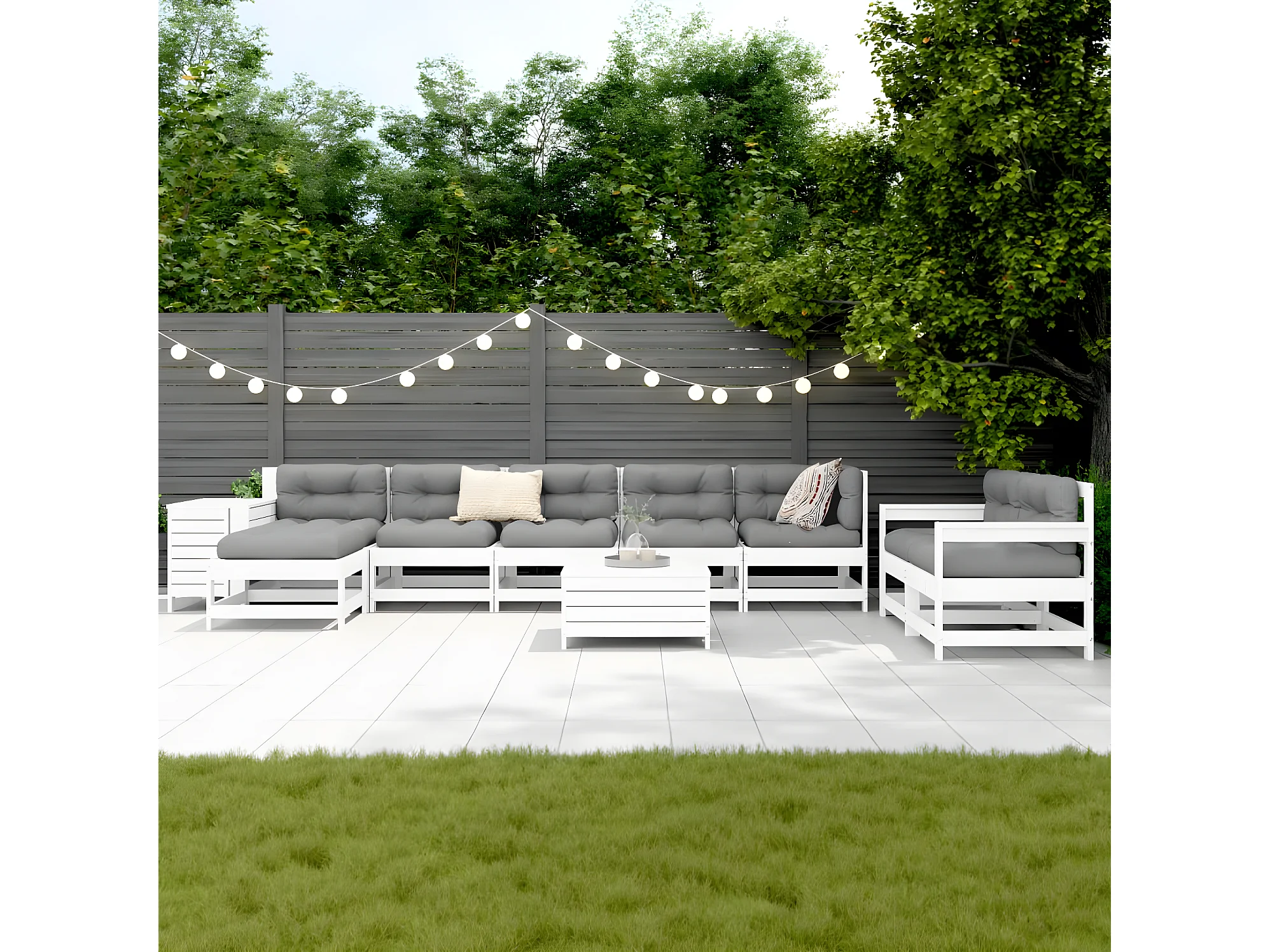 Salon de jardin 10 pcs blanc bois de pin massif