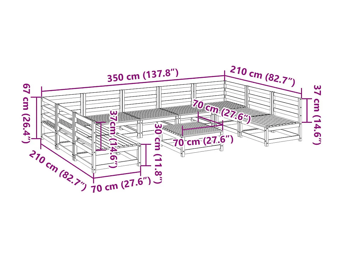 Salon de jardin 10 pcs bois de pin massif