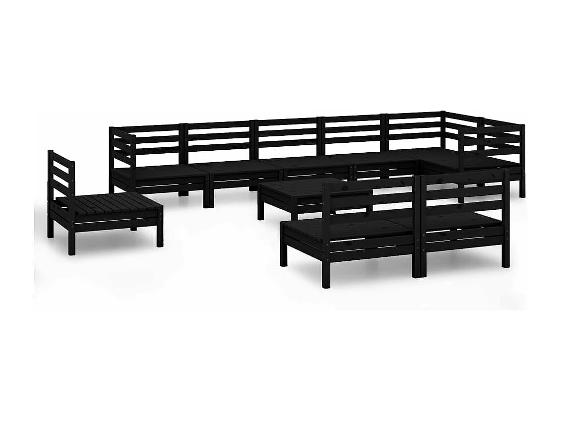 Salon de jardin 10 pcs Bois de pin massif Noir