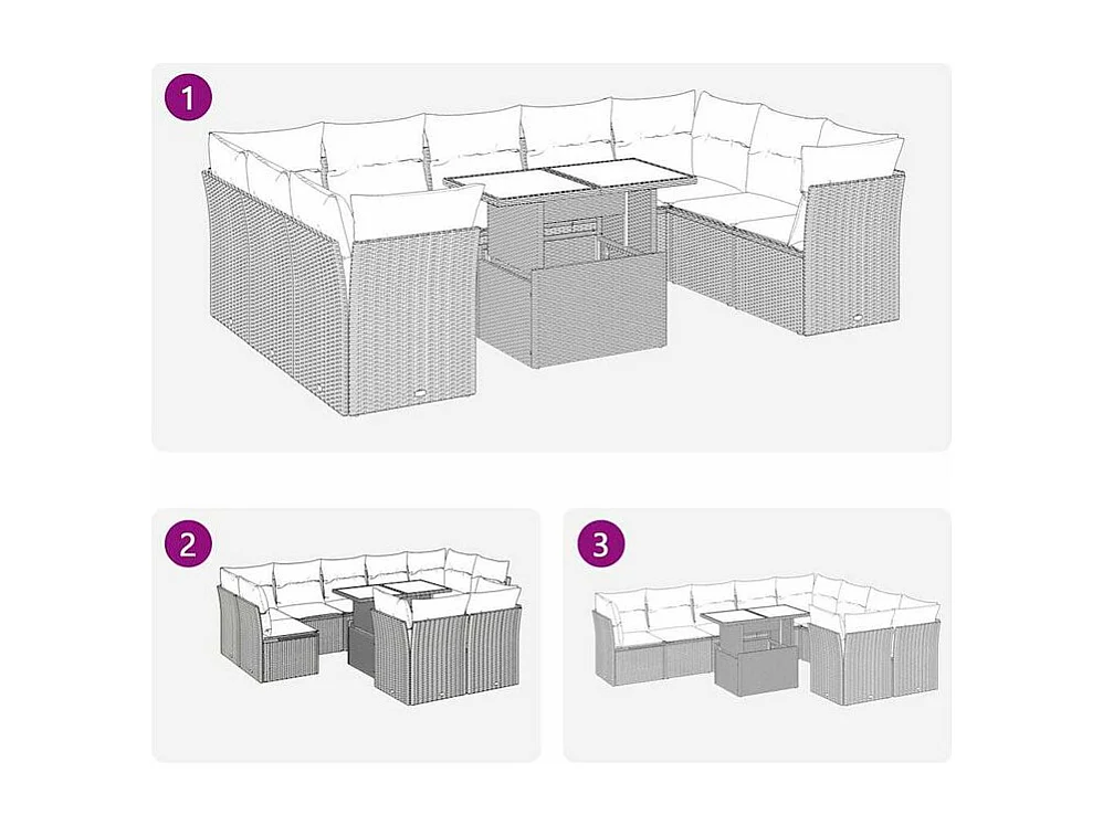 Salon de jardin 10 pcs et coussins marron résine tressée acacia
