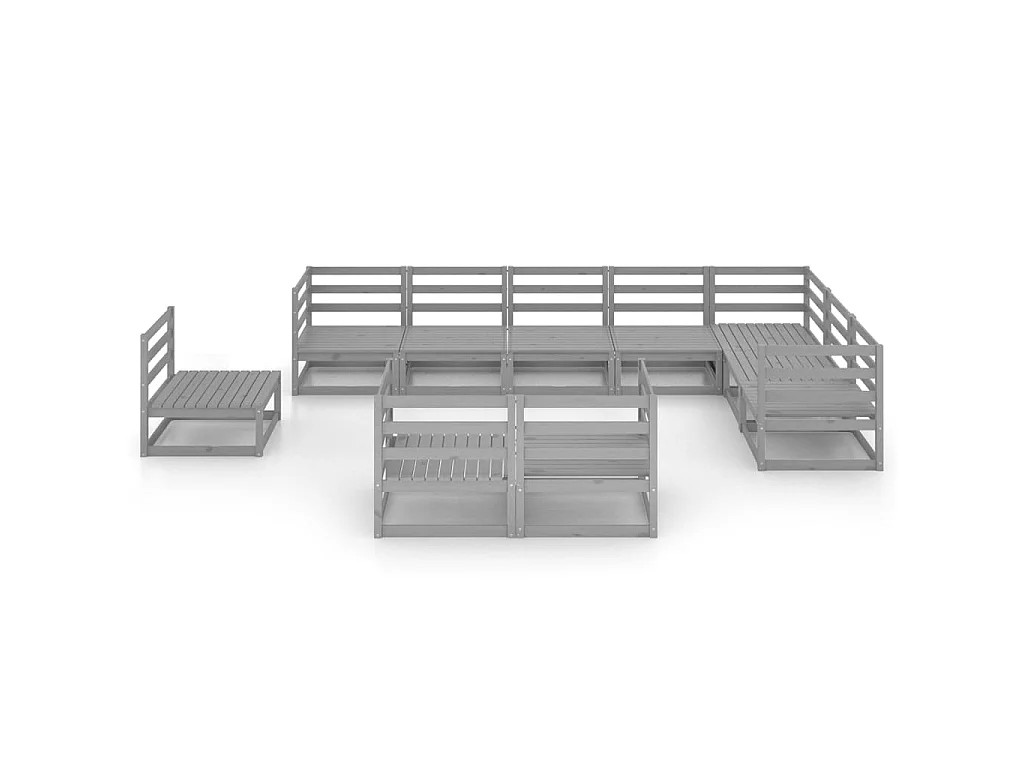 Salon de jardin 10 pcs Gris Bois de pin massif 2