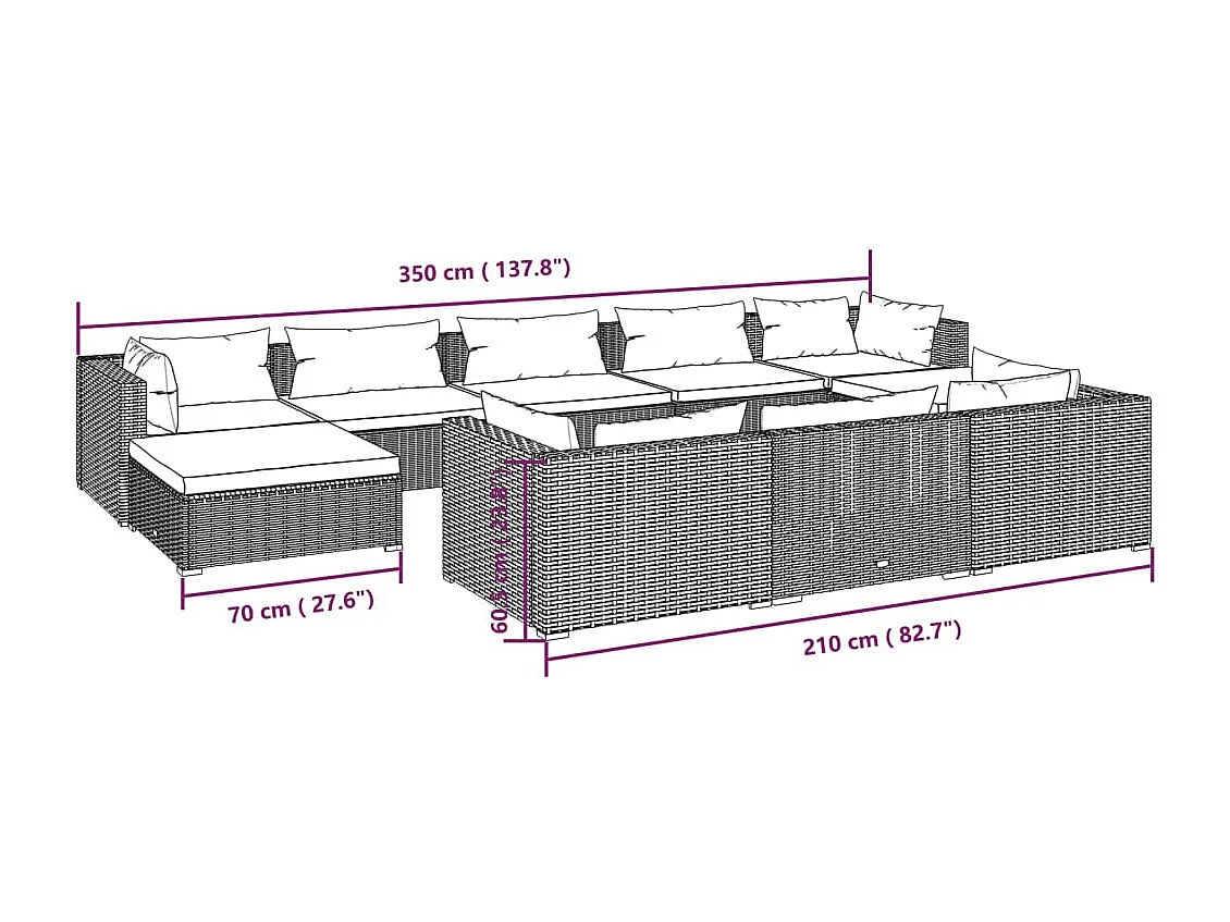 Salon de jardin 10 pièces avec coussins Marron Résine tressée