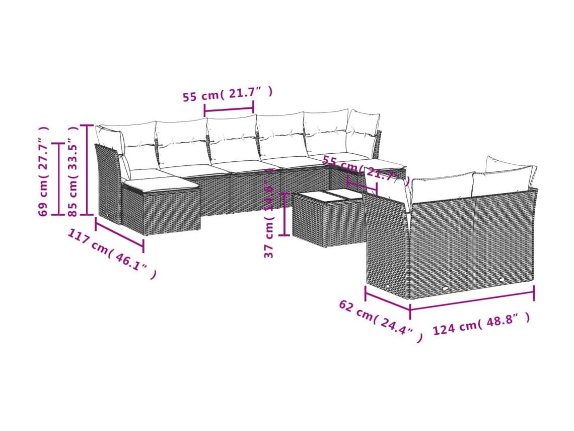 Salon de jardin 10 pièces avec coussins marron résine tressée
