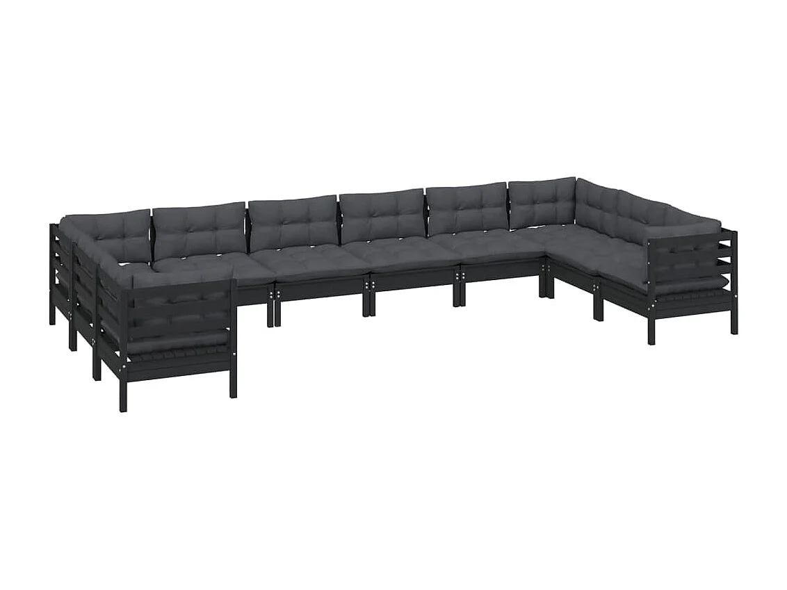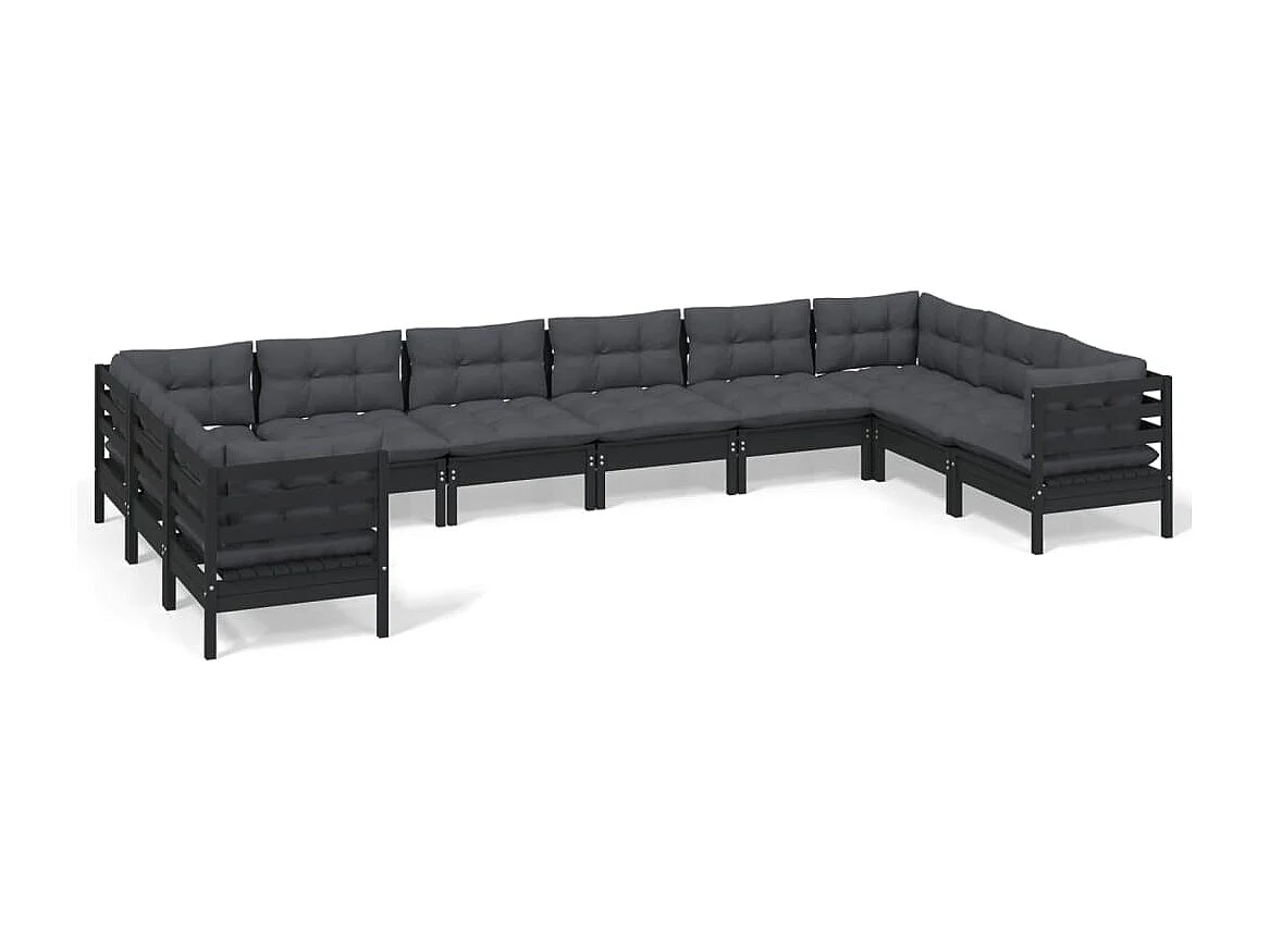 Salon de jardin 10 pièces avec coussins Noir Bois de pin