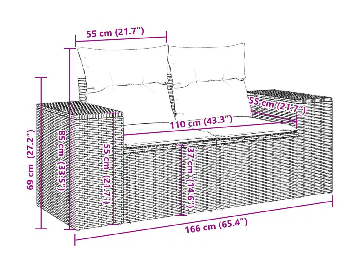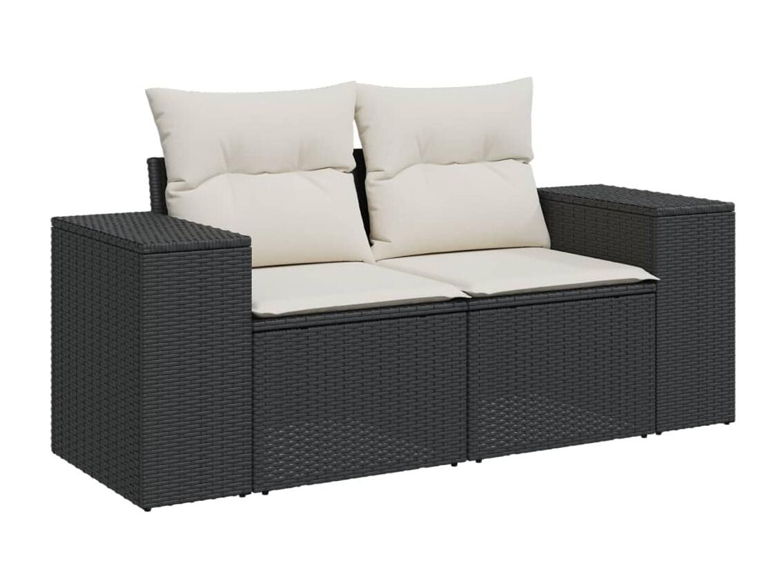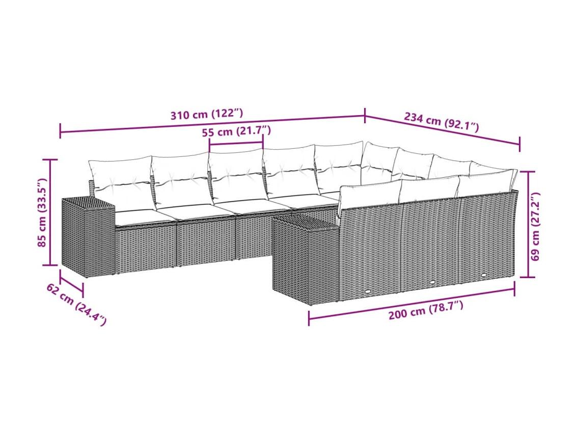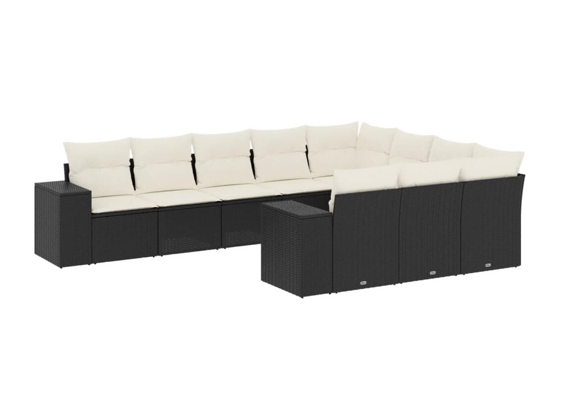 Salon de jardin 10 pièces avec coussins noir résine tressée