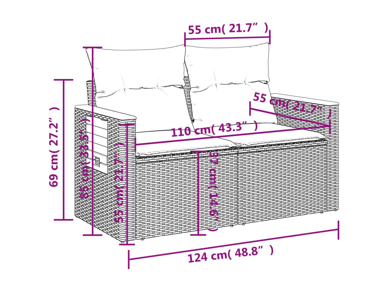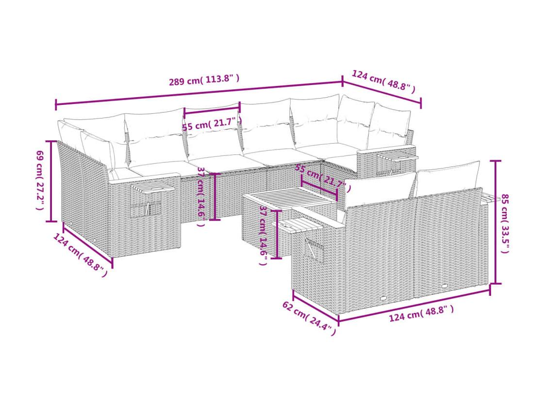 Salon de jardin 10 pièces avec coussins noir résine tressée