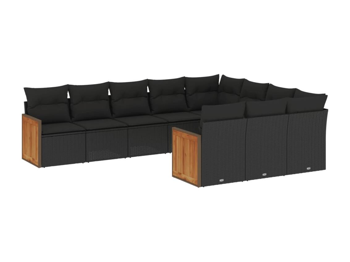 Salon de jardin 10 pièces avec coussins noir résine tressée