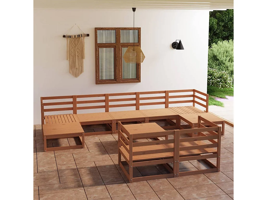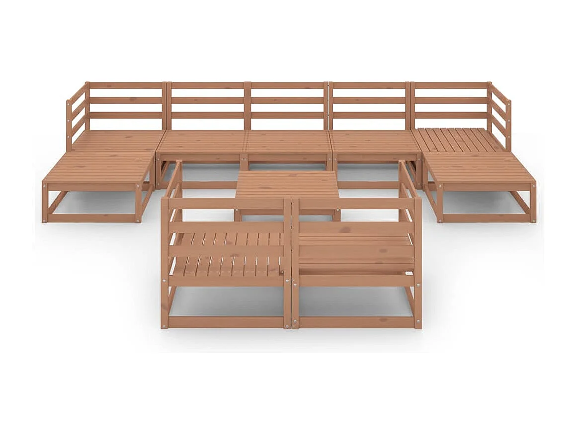Salon de jardin 10 pièces marron miel bois de pin massif