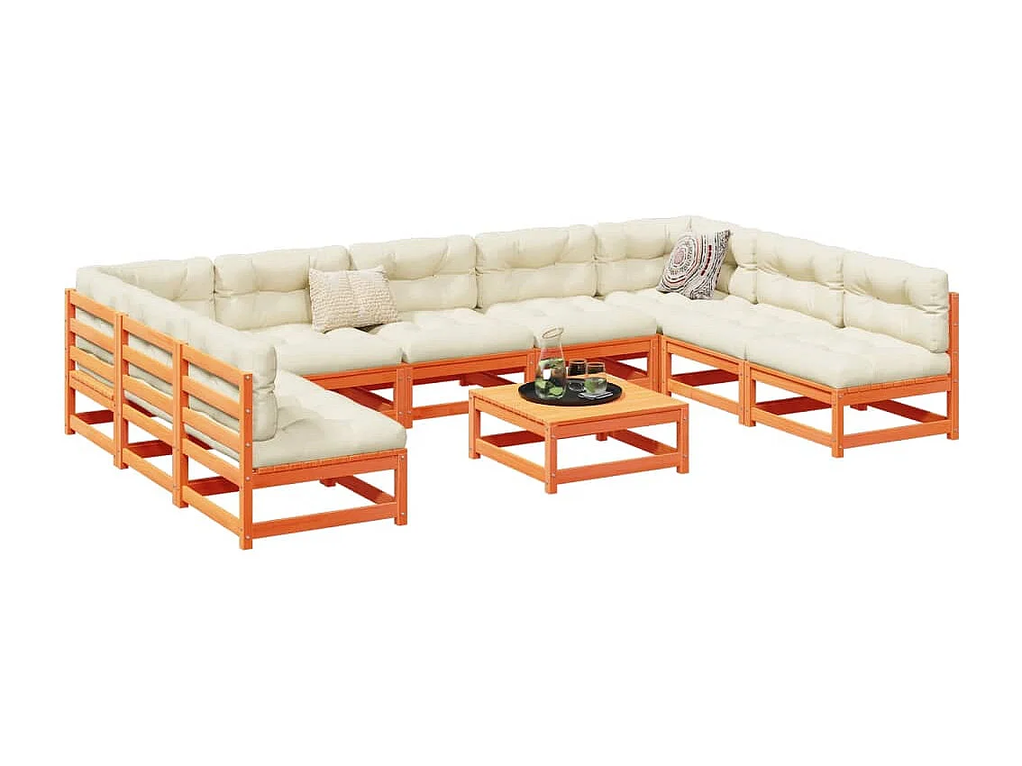 Salon de jardin 10pcs avec coussins cire marron bois pin massif