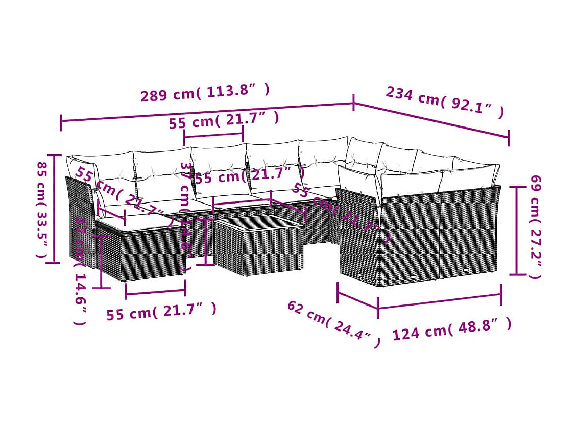 Salon de jardin 11 pcs avec coussins beige résine tressée
