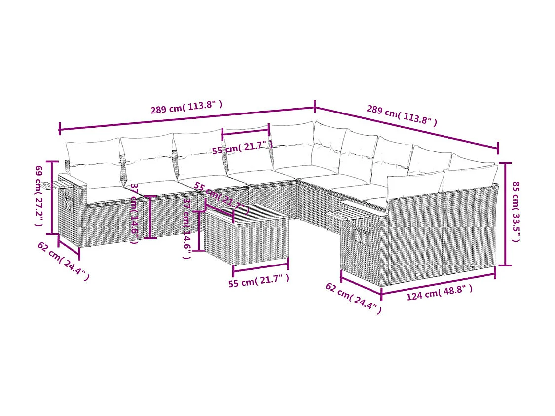 Salon de jardin 11 pcs avec coussins beige résine tressée