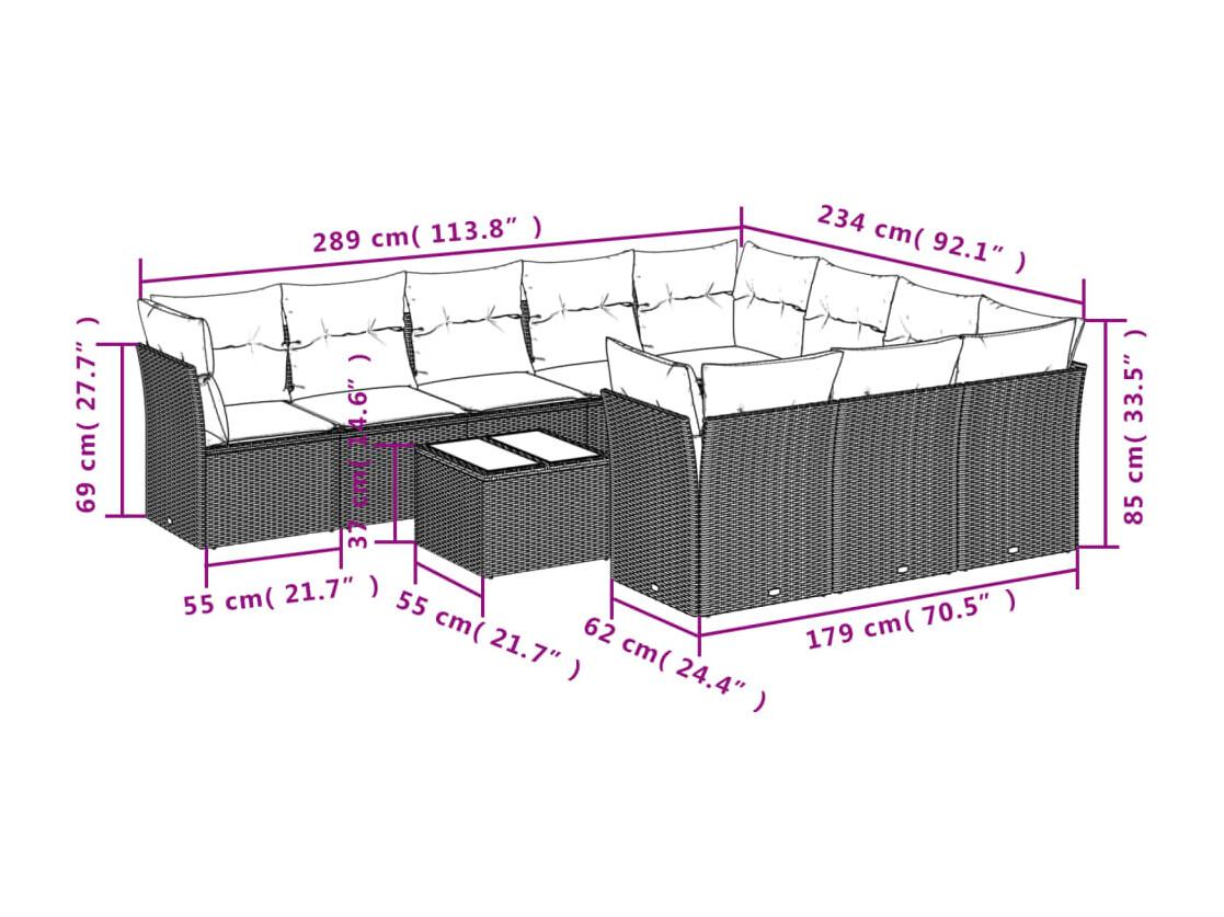 Salon de jardin 11 pcs avec coussins beige résine tressée