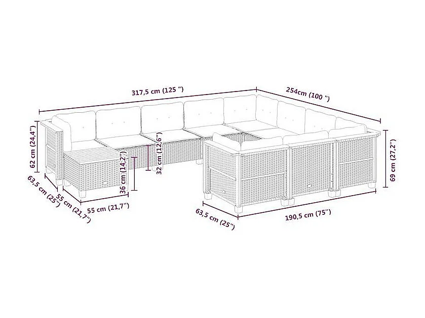 Salon de jardin 11 pcs avec coussins beige résine tressée