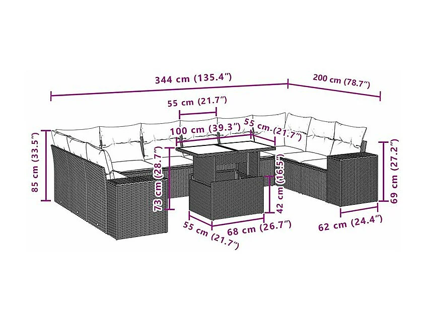 Salon de jardin 11 pcs avec coussins beige résine tressée