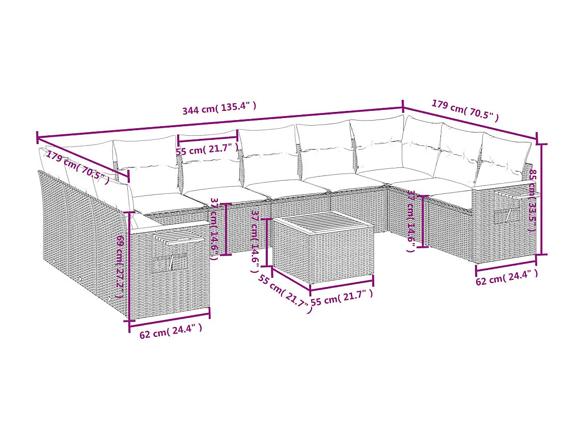 Salon de jardin 11 pcs avec coussins beige résine tressée