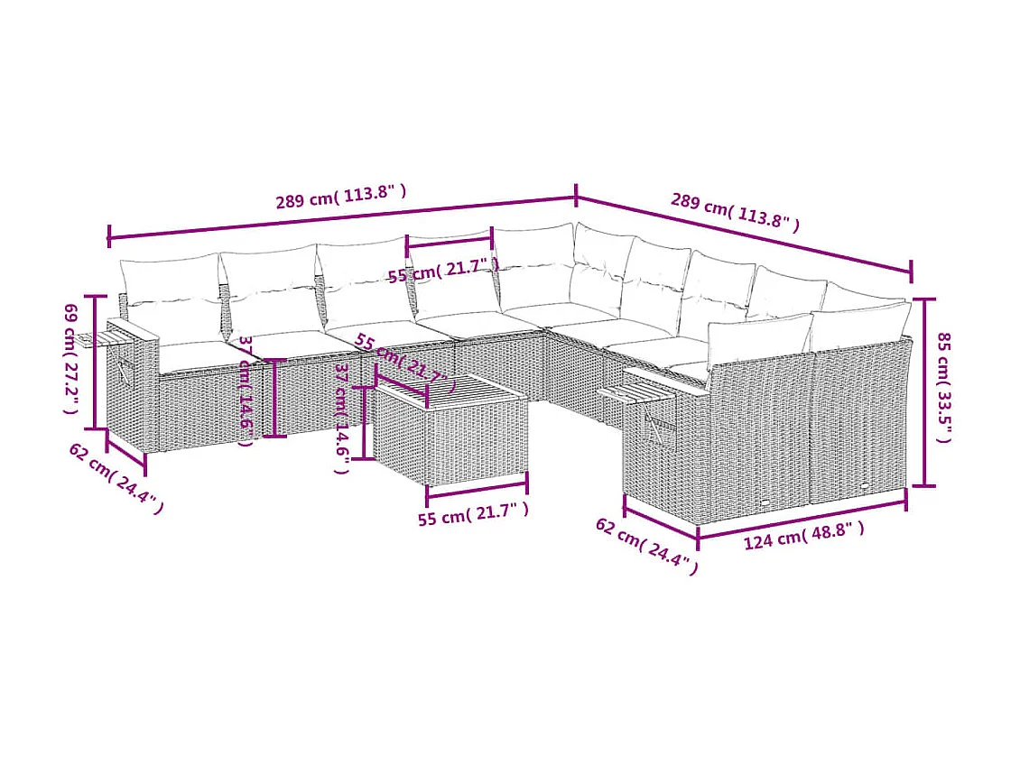 Salon de jardin 11 pcs avec coussins beige résine tressée