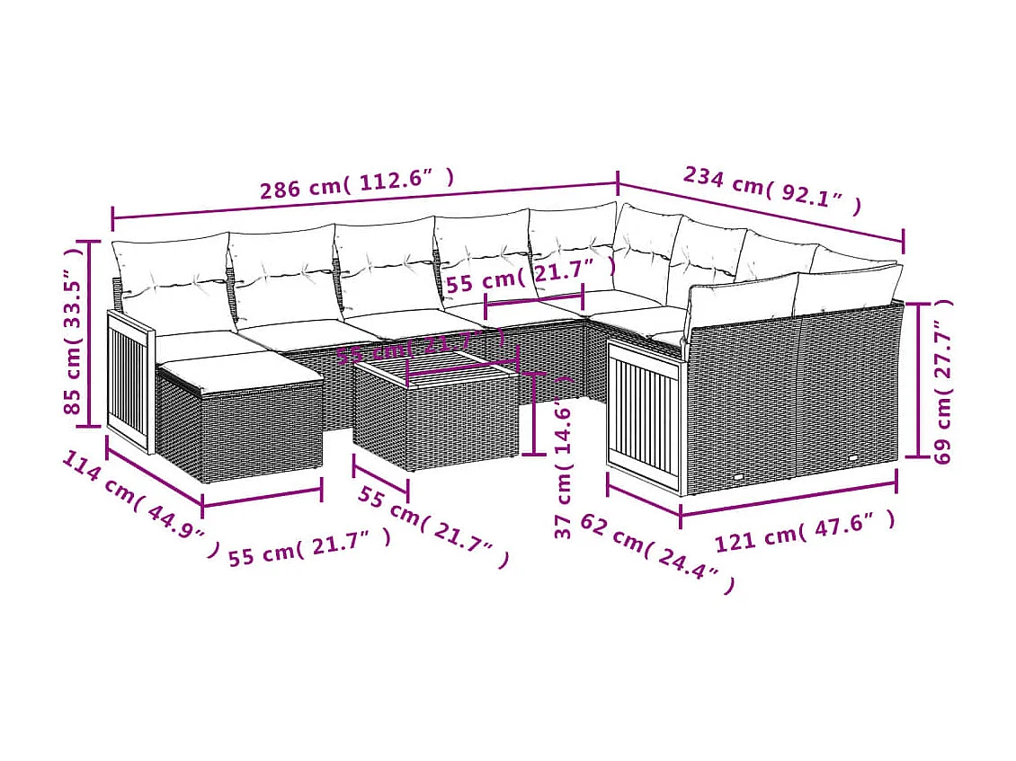 Salon de jardin 11 pcs avec coussins beige résine tressée