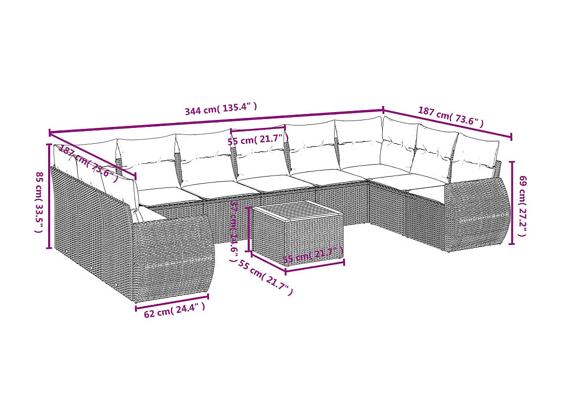 Salon de jardin 11 pcs avec coussins beige résine tressée