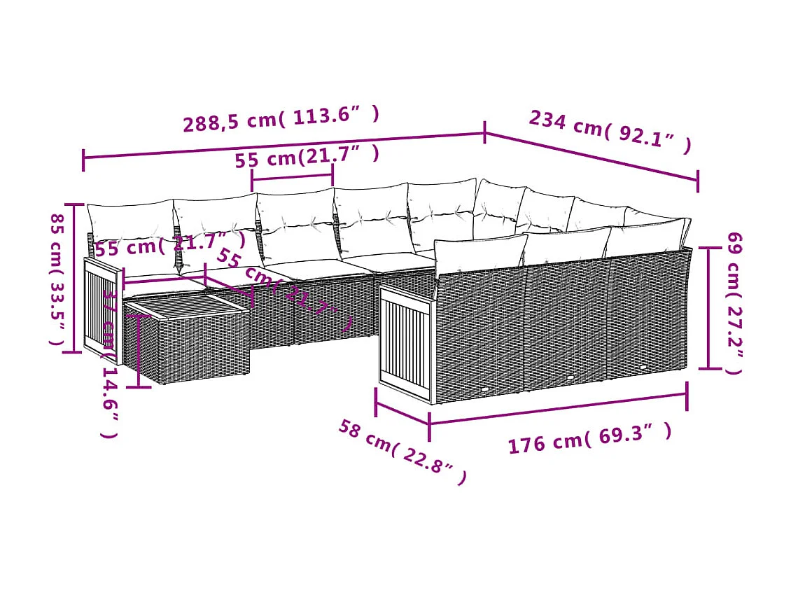 Salon de jardin 11 pcs avec coussins beige résine tressée