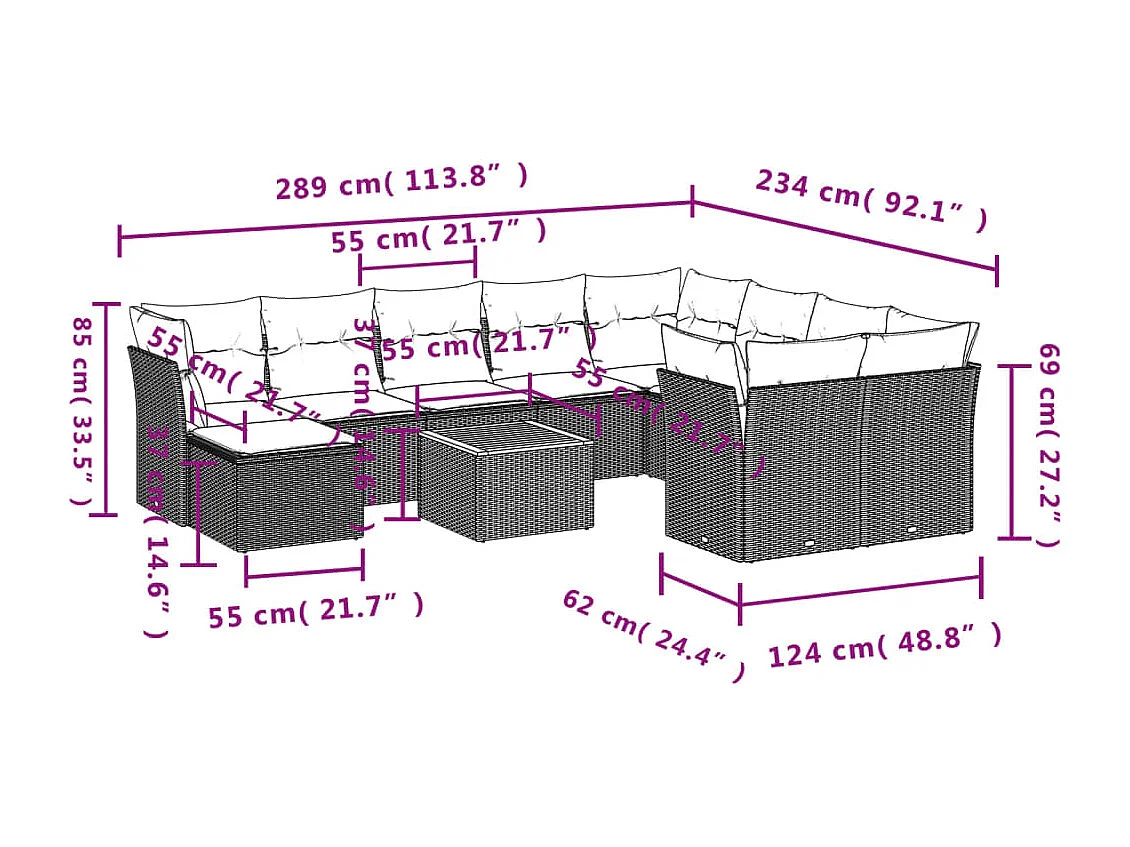 Salon de jardin 11 pcs avec coussins beige résine tressée