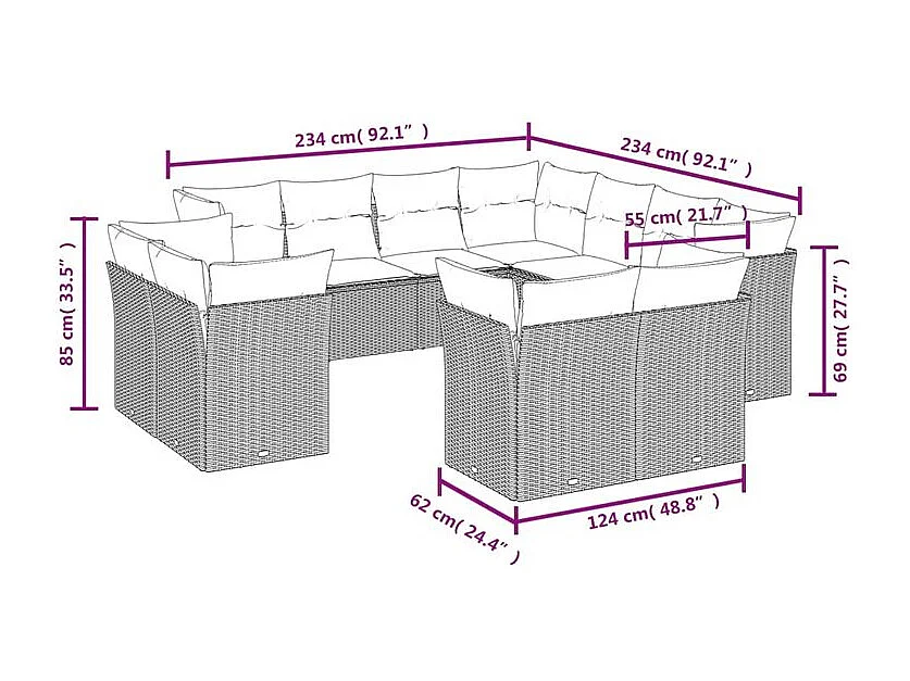 Salon de jardin 11 pcs avec coussins gris clair résine tressée