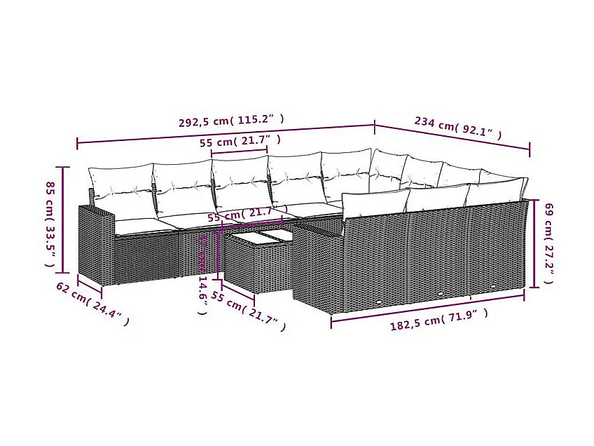 Salon de jardin 11 pcs avec coussins gris clair résine tressée