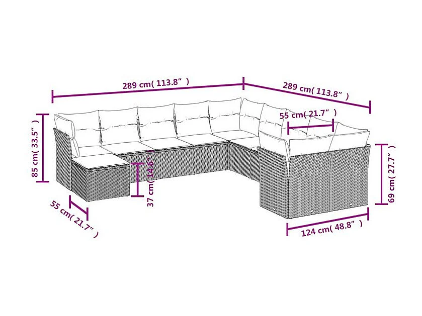 Salon de jardin 11 pcs avec coussins gris clair résine tressée