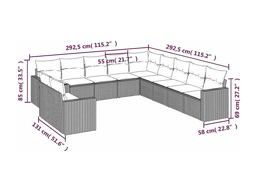 Salon de jardin 11 pcs avec coussins gris clair résine tressée