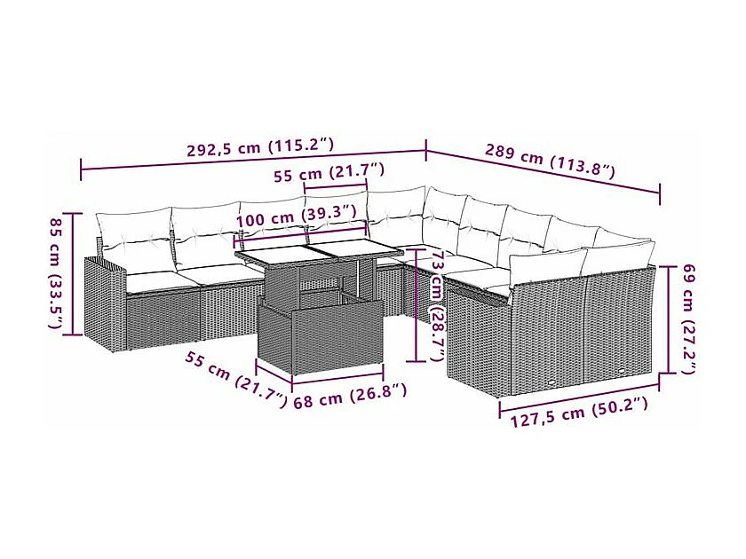 Salon de jardin 11 pcs avec coussins gris clair résine tressée