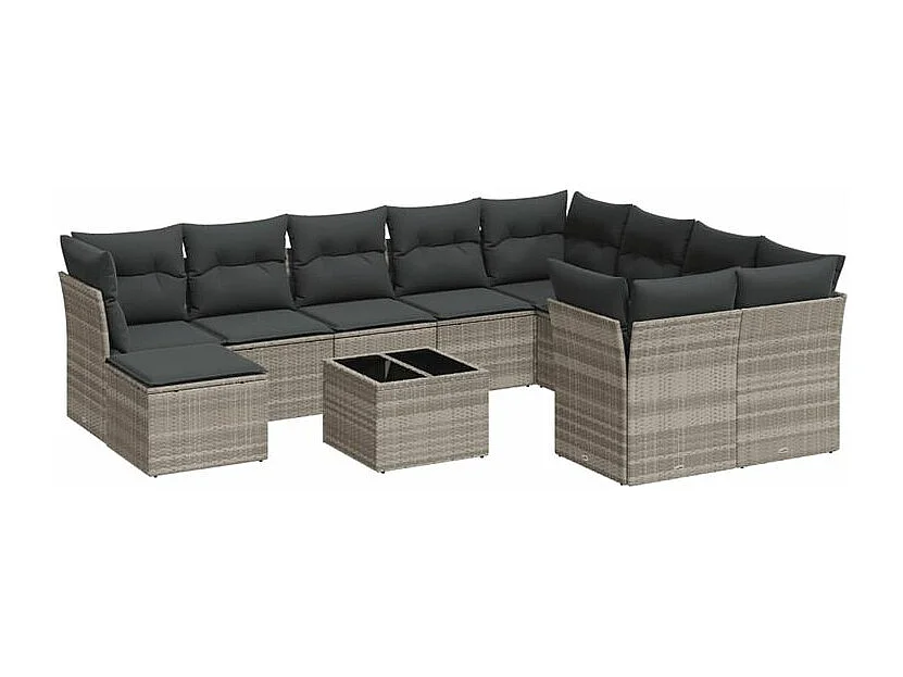 Salon de jardin 11 pcs avec coussins gris clair résine tressée