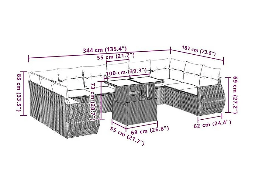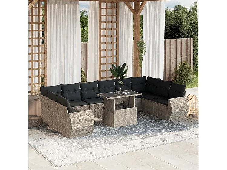 Salon de jardin 11 pcs avec coussins gris clair résine tressée