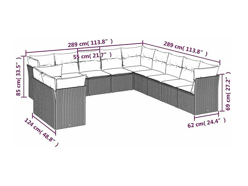 Salon de jardin 11 pcs avec coussins gris clair résine tressée
