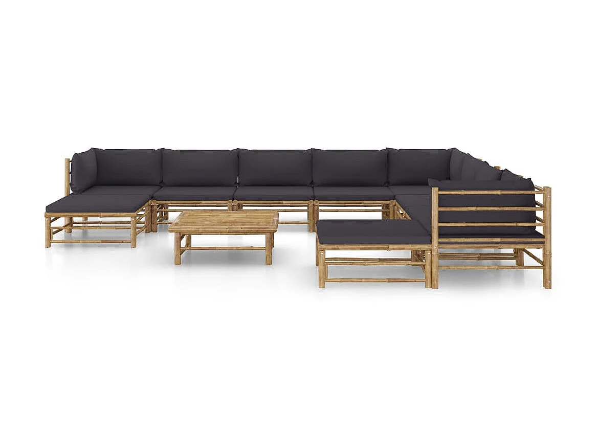 Salon de jardin 11 pcs avec coussins gris foncé Bambou
