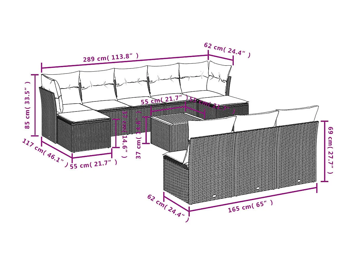 Salon de jardin 11 pcs avec coussins gris résine tressée