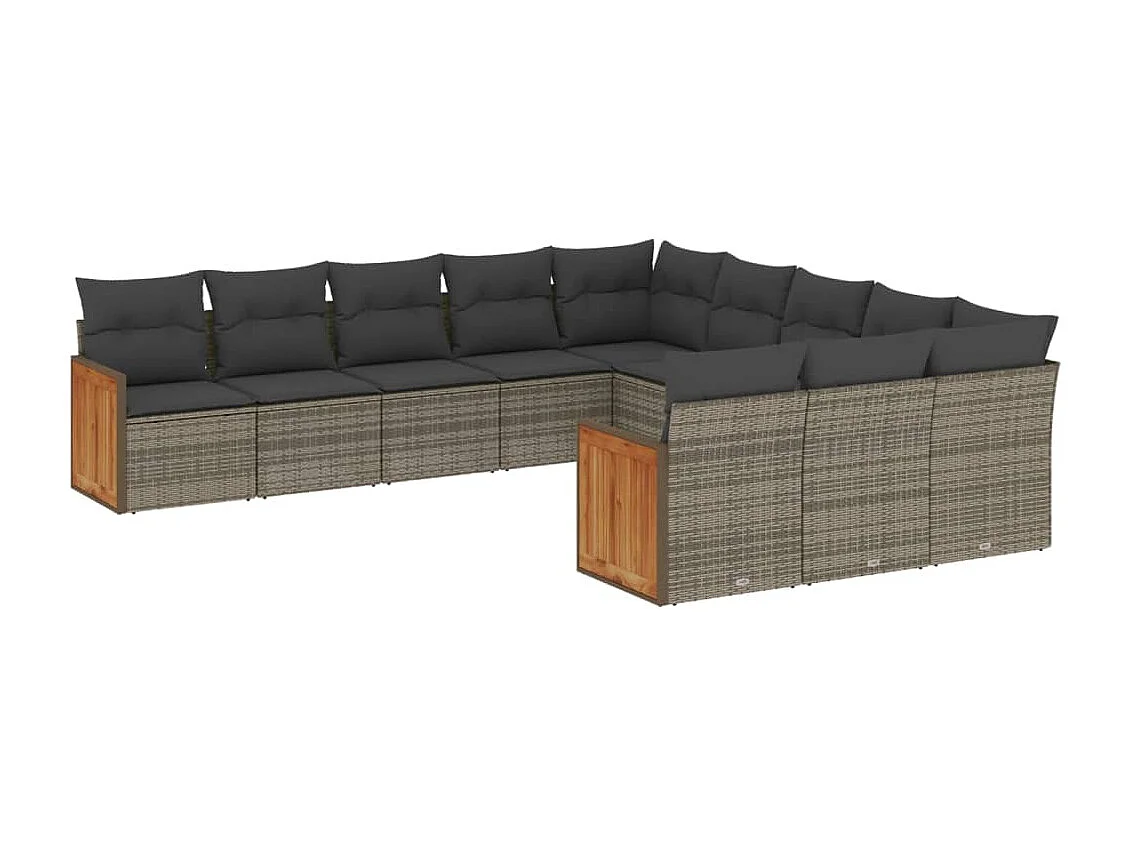 Salon de jardin 11 pcs avec coussins gris résine tressée